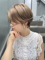 大人ショートボブ、前髪なしショートはシャープに切ったライン、襟足をしめてスッキリ見せたりと、メリハリを効かせて絶妙なバランスに!カラーはシルキーベージュで透明感、質感をプラスして大人見えに! 夏のイメチェン,ヘルシースタイル楽しみませんか?