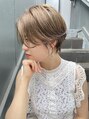 大人かわいい前下りのハンサムショート、大人ショートボブはシャープに切った毛先のライン、襟足をしめスッキリ見せたり、メリハリを効かせ絶妙なバランス!ブリーチしてシルキーベージュにしウェットスタイルで大人見えに! 冬のイメチェン楽しみません?