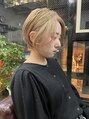 大人かわいい前下りの前髪なしショート、大人ショートボブは 似合わせカットでシャープに切った毛先のライン、襟足をしめスッキリ見せたり、メリハリを効かせ絶妙なバランス!ブリーチ後パールミルクティーで大人見えに。ヘルシースタイル楽しみませんか?