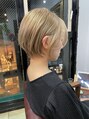 大人かわいい前下りの前髪なしショート、大人ショートボブは 似合わせカットでシャープに切った毛先のライン、襟足をしめスッキリ見せたり、メリハリを効かせ絶妙なバランス!ブリーチ後パールミルクティーで大人見えに。ヘルシースタイル楽しみませんか?
