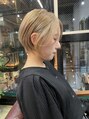大人かわいい前下りの前髪なしショート、大人ショートボブは 似合わせカットでシャープに切った毛先のライン、襟足をしめスッキリ見せたり、メリハリを効かせ絶妙なバランス!ブリーチ後パールミルクティーで大人見えに。ヘルシースタイル楽しみませんか?