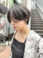 大人かわいい前下りのハンサムショート、大人ショートボブはシャープに切った毛先のライン、襟足をしめスッキリ見せたり、メリハリを効かせ絶妙なバランス!ブリーチ後暗めグレーベージュにし透け感を。マッシュパーマ風スタイル楽しみませんか?