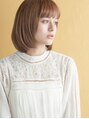 アンニュイな雰囲気がかわいいロブ。カラーは、テディミルクティベージュでさらに甘く。クセがあり、トップがペタンとする方は、カットは重めに顔周りはレイヤーを入れてコントロール。割れやすい前髪は、生えグセに合わせてカットラインを調節します。