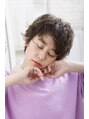 。ラフなカールの重なりでエアリーなフォルムにルーズな動きをトッピング。アクティブガールにおすすめな、作り込みすぎない無造作なパーマヘアです。もみあげにもカールをつけ、スタイリング剤もしっかりつけて動かし、アクセントにしています。
