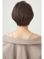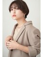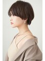 ショートでも丸みがある女性らしいショートです。前髪は少し長めで幅を狭くした透けバングです。幅広い女性像の方に似合うへアルタイルです。