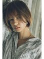 女性らしいソフトなデザインの中にクールな印象を織り交ぜた大人ボブです。スライドカットによるソフトなレイヤーと長短をつけた前髪でバランスを整えています。カラーはオレンジベージュにして鮮やかな発色とツヤ感を叶えました。
