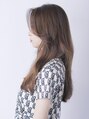 重めのワンレンベースに、顔まわりとトップにレイヤーを入れ、顔まわりに1線だけ短い毛束をつくりました。顔まわりを後ろに流したヨシンモリ&エギョモリで、韓国風お姉さん系美人に!