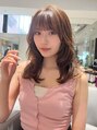 コテで巻きやすいように顔まわりはレイヤーカットをしてますゆるっと巻くことでモテ可愛いヘアスタイルに♪ぷつっと前髪で可愛く仕上げます