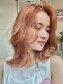 前髪をかき上げる事によって大人女性の色気を感じるくびれミディアムスタイルトップと顔周りにレイヤーを入れてどこからみても自然にくびれて見えるのが特徴色は暖かみのあるオレンジベージュ渋谷 宮下パーク 駅近#レイヤーカット#くびれミディ