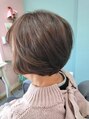 カットで少し段をつけさせて頂いて色は明るめのグレイカラーで^^肩につくぐらいの長さからスッキリと♪♪暫くお手入れ楽になりますよーに^^また色々情報教えてください笑