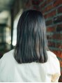 ワンレンの切りっぱなしのロブのスタイルです。前髪も揃え少し重ためにしてカジュアル感をだしました。カラーはダークトーンの中に明るめのブラウンでさりげないハイライトをいれることで動きの出にくいワンレンでも単調にならず、オシャレなカラーリングに☆