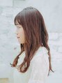 ゆるいウェーブが可愛いロングスタイルになります!ロングでも重く見えないように、顔まわりは軽めにします。前髪も透け感を出し、肌を見せます。巻いて眉の長さにし、カジュアルな印象にします!ベージュ系カラーがツヤ感をだします!