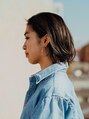 暗めのダークブラウンカラーと、オールバックのスタイリングで強めなスタイル。顎ラインのボブは少し重さを残すことでまとまりがでてボリュームも残すことができます。
