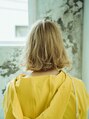 表面にレイヤーが入った前下がりボブです。カラーはブリーチを2回して黄味を抑えるためにバイオレット系カラーを薄めてオンカラーしています。