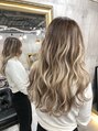 地毛のハイライトとバレイヤージュに合わせてシールエクステ60枚をローライトを混ぜながら付けてセミロングヘアにしました。
