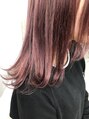 ハイトーンから黄ばみとオレンジ味が出ないようにムラサキ色を混ぜながらツヤピンクにトーンダウン。まだまだピンクカラーが人気です。
