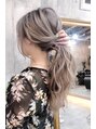 1カ月前に一度ブリーチしている髪をさらにブリーチ+カラーでホワイティーグレージュにカラーしてから胸までの長さの地毛をシールエクステ60枚でハイライトを混ぜながらつけてロングスタイルにしました。