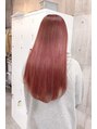 ブリーチ履歴のある髪をチェリーピンクにカラーしてからシールエクステ80枚でロングスタイルにしました。地毛の長さは胸ぐらいの毛先軽めからです。