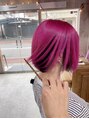 1年ぶり以上の久々カラー、トップをブリーチ2回してカラーバターは使わずにカラー剤で出来るだけピンクにインナーはBLACKをのこしています。
