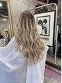 ブリーチ履歴のある髪をグレージュカラーでトーンダウンしてからハイライトを太めに混ぜながらシールエクステ80枚付けてロングスタイルにしました。地毛の長さは胸ぐらいです。