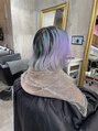 ブリーチ履歴2回以上カラーバター履歴沢山ある状態からブリーチリタッチをしてからカラーバターでブルーを入れました。カラーバターで染める場合は追加メニューでカラーバターを選択して下さい。
