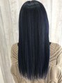 ケアブリーチで2回色を抜いた後にアディクシーカラーでネイビーカラーをのせてます!!TOKIOトリートメントもしてダメージをしっかり抑えてます。