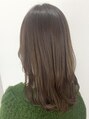 レイヤースタイル!表面にレイヤーを入れることで動きが出やすく巻きやすくなるのでおすすめです。アディクシーカラーで赤みを消して柔らかい質感のカラーで仕上げてます。
