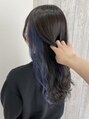 全体は暗めのアッシュで、イヤリング部分にはネイビーブルーを!(ブリーチ履歴1回)色抜けしても黄ばみが出づらく、ふんわり淡い発色が続きます♪