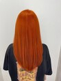 ケアブリーチで傷ませないようにベースを作ってからアプリコットオレンジのカラーをかぶせたハイトーンのデザインカラーです!ケアブリーチなのでしっかりダメージ抑えてできます!