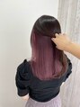 全体は地毛に馴染むトーンのアッシュ、インナー部分はパープルピンクで染めました。色落ちも黄ばみも出づらいカラーなのでおすすめです。(ブリーチ履歴1回)