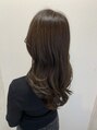 アディクシーカラーで赤みオフ&透明感UP。ツヤのあるブラウンに毛先のゆるカールを合わせた、軽さと柔らかさが映えるロングスタイル。