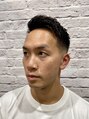周りはスッキリしつつ、上はビジネスシーンでもキマるような清潔感のあるアップバングスタイルに仕上げました。フェードスタイル大人気です!0mmにする勇気が出ない方でも長さの調節は可能ですので、気になる方は是非チャレンジしてみてください!