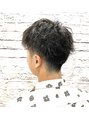 周りをツーブロックでスッキリさせつつ、上はツイストパーマで、チリチリ感を出すことで、若い方に人気のスタイルにしました!