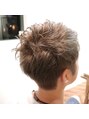 ツーブロックショート。襟足をすっきり刈り上げることで、爽やかに。クセをいかして無造作に。直毛の人はゆるめにパーマをかけるとイイ感じになります。カラーはハイトーンのアッシュ系。