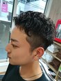 くせ毛を活かしたツーブロックのショートスタイルです。長さと質感を調節する事で、くせの強い方も爽やかな無造作スタイルになります。