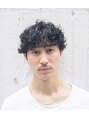 サイドを2ブロックにしたマッシュベースにカットし、根元からパーマをかけた、この夏おススメのゴキゲンなスタイル!髪を動かすことで、色気とムードが増し、シンプルになりがちなファッションとのフィット感もGOOD!夏と太陽とカールヘア!