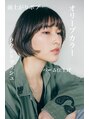 バング両端からサイドにかけて緩やかにつながる、前上がりラインがチャーミングなボブスタイル。シルエットに丸さを出すことで、女性らしさのあるフォルムになります。服が似合う髪です!