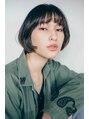 バング両端からサイドにかけて緩やかにつながる、前上がりラインがチャーミングなボブスタイル。シルエットに丸さを出すことで、女性らしさのあるフォルムになります。服が似合う髪です!
