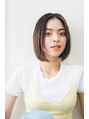 パタンと切り揃えた、潔いボブスタイル。さらには、毛先に柔らかさの出るようにカットしているため、まっすぐ、外ハネ、両方のスタイリングが楽に決まります。顔まわりの一部分だけカールをつけた、シンプルの中に遊び心をプラスしたスタイルです。