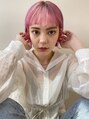 重くたまりやすく動きの少ないボブでもバングを眉上にすることで軽やかさとパッと目を引くスタイルに◎さらにカラーはブリーチをし、あえてビビットなピンクをチョイスし周りと差をつけオシャレ度アップに!