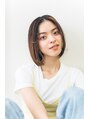 パツンと切り揃えた、潔いボブスタイル。さらには、毛先に柔らかさの出るようにカットしているため、まっすぐ、外ハネ、両方のスタイリングが楽に決まります。顔まわりの一部分だけカールをつけた、シンプルの中に遊び心をプラスしたスタイルです。