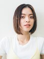 パツンと切り揃えた、潔いボブスタイル。さらには、毛先に柔らかさの出るようにカットしているため、まっすぐ、外ハネ、両方のスタイリングが楽に決まります。顔まわりの一部分だけカールをつけた、シンプルの中に遊び心をプラスしたスタイルです。
