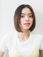 パツンと切り揃えた、潔いボブスタイル。さらには、毛先に柔らかさの出るようにカットしているため、まっすぐ、外ハネ、両方のスタイリングが楽に決まります。顔まわりの一部分だけカールをつけた、シンプルの中に遊び心をプラスしたスタイルです。