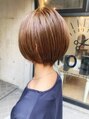 ハイライトをちりばめています前髪が長いスタイルです。襟足は短く切ってなだらかにくびれるように作りました。ふっくらしたスタイルですね♪