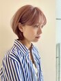 ピンクベージュ ブリーチ 耳かけ ショートボブ