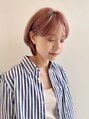 ピンクベージュ ブリーチ 耳かけ ショートボブ