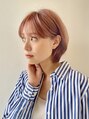 ピンクベージュ ブリーチ 耳かけ ショートボブ