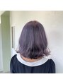 色落ちもきれいなアッシュグレー。切りっぱなし風のミディアムヘアを外ハネに巻いてふわっとしたスタイル。