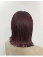 肩ラインで自然にハネる長さの切りっぱなしボブ。カラーはブリーチ無しワインレッドカラー。暗めのレッドカラーはツヤ感が出るので髪の毛が綺麗に見えます。