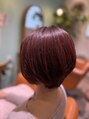 こちらのお客様は白髪染めとファッションカラーをミックスして染めています。今回は赤にしたいとの事でした。カットは襟足にレイヤーを入れて大人っぽいショートヘアに仕上げました。トリートメントはジャリルトリートメントとケアプロのダブルです。